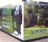 Desco is a first class e-waste recycling company for Southern Africa, with its head office and processing plant situated in Pomona, Gauteng, which is an established, environmentally responsible accredited recycler of electronic waste.